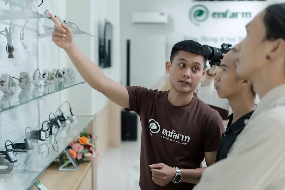 On July 27, 2024, Enfarm officially opened its first store at 212 Nguyen Tat Thanh Street, Buon Ma Thuot City, Dak Lak Province, with the participation of representatives from government agencies, scientific researchers, and cooperatives.