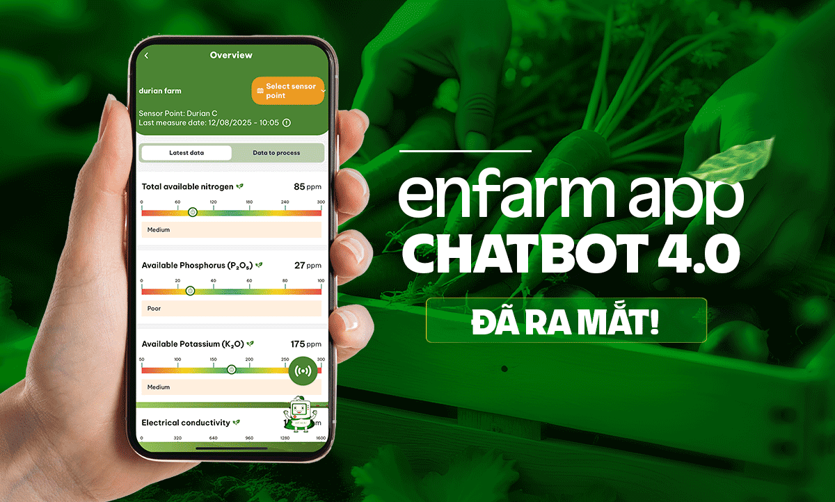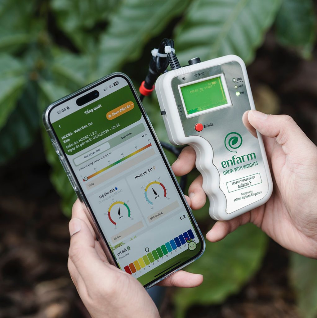 enfarm là công nghệ đo chất lượng đất duy nhất có độ chính xác tương đương phòng thí nghiệm đạt chuẩn ISO của Viện Khoa học Kỹ thuật Nông Lâm nghiệp Tây Nguyên, được thiết kế dành riêng cho cây trồng, thổ nhưỡng và nông dân Việt Nam. Hệ thống enfarm đo lường bảy chỉ số quan trọng, bao gồm độ pH, hàm lượng nitơ (N), phốt pho (P), kali (K), nhiệt độ đất, độ ẩm trong đất và độ dẫn điện của đất, giúp nông dân quản lý đất trồng hiệu quả và bền vững.